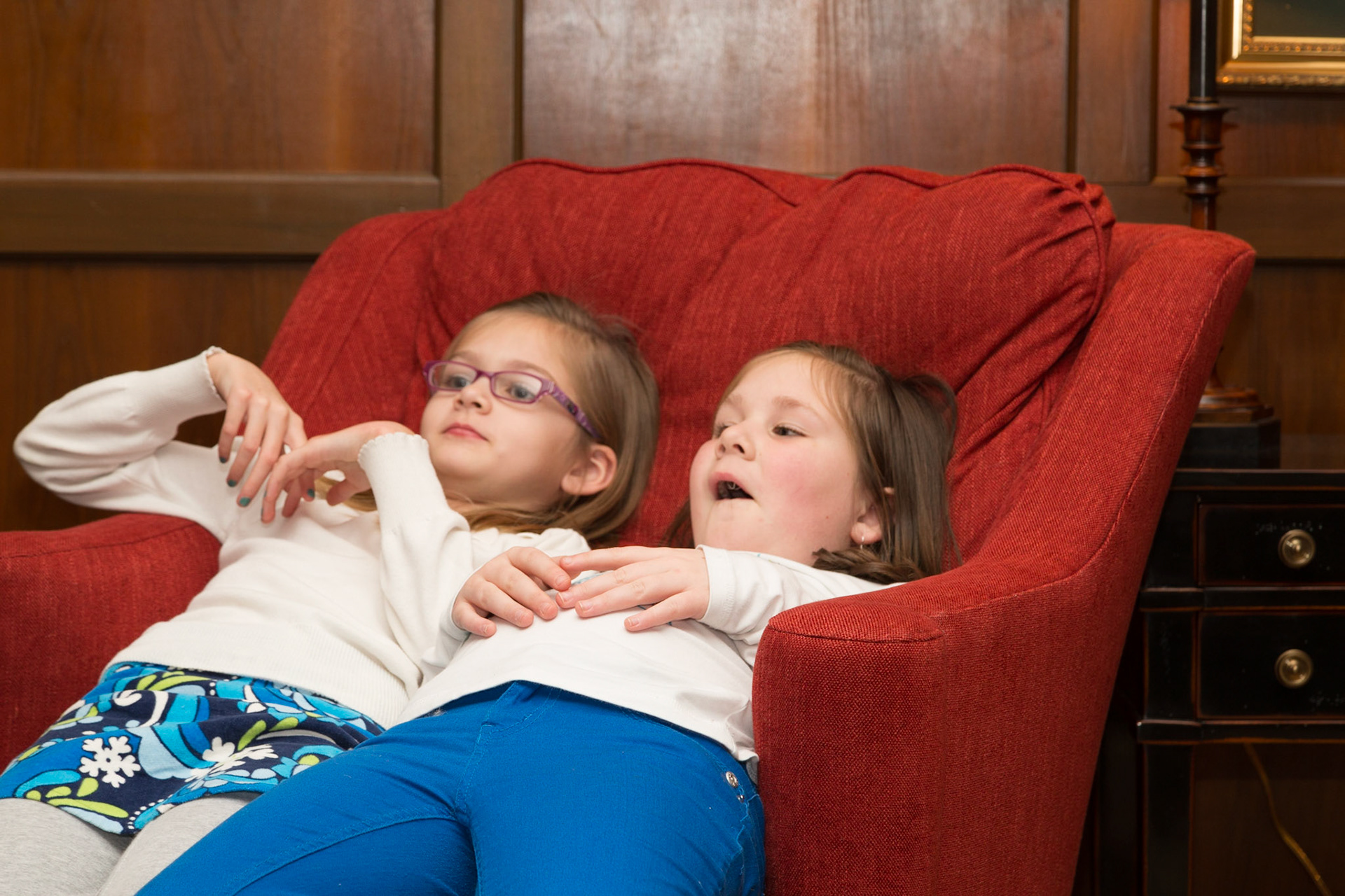Josephine, Grace and Trever visited for a couple of days. Oh, their mother came too. Dad was traveling for business. At breakfast, Josephine was being cute.